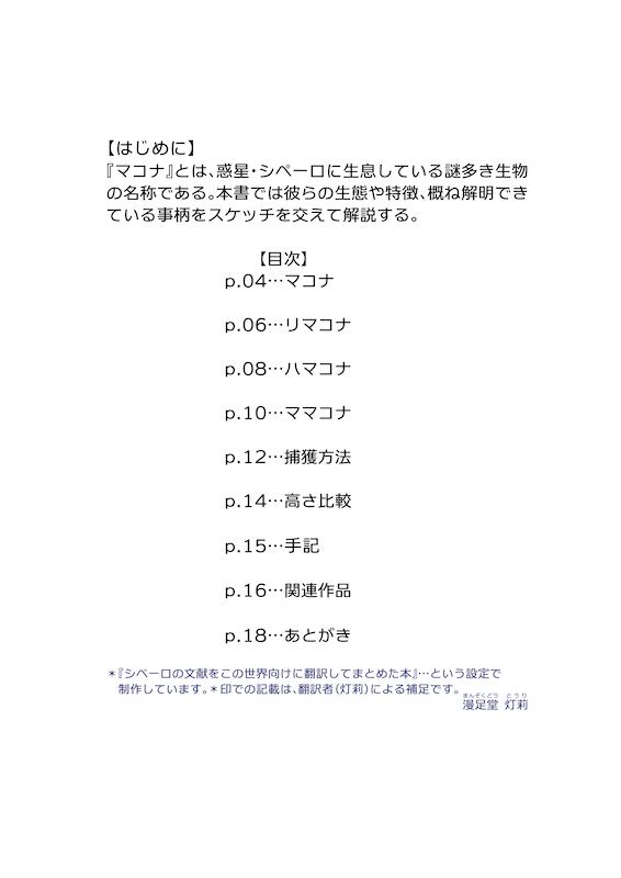 ふしぎないきもの『マコナ』のことがなんとなくわかるかもしれないフルカラーイラスト集です(A5/20p)